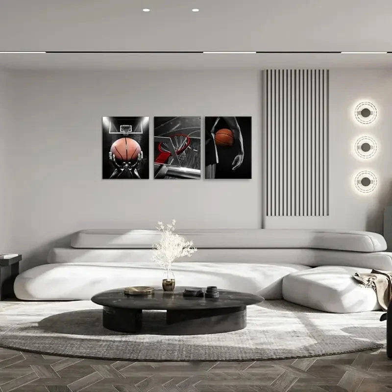 3pcs Basketball Dynamic Sports Scene Metal Print Ready to Hang Art