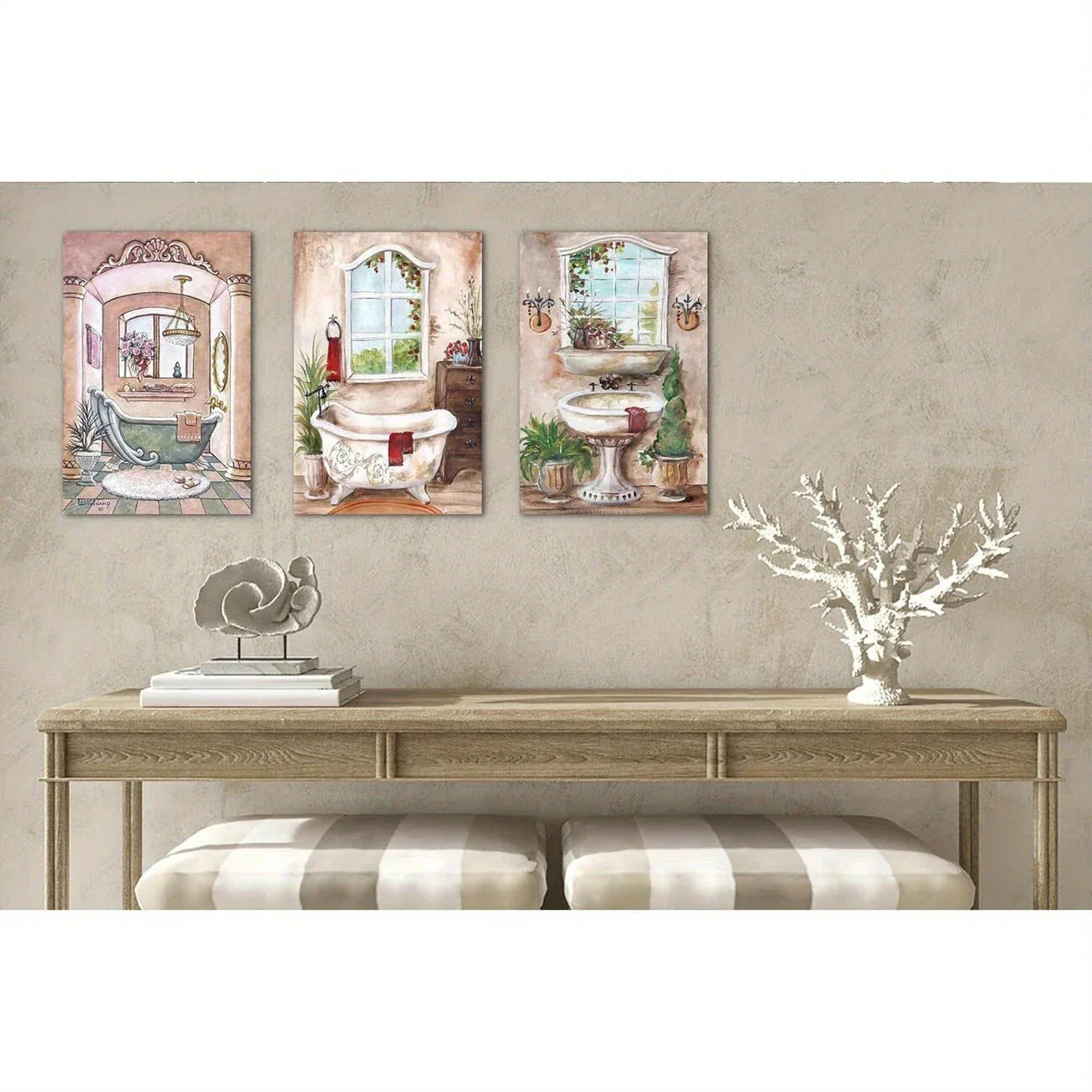 3pcs Bathtub Rustic Style Painting Metal Print Ready to Hang Art