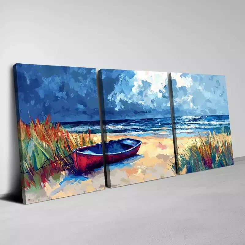 3pcs Beach and Boat with Sky View Scenery Wall Art Set Canvas Framed 40x60cm - High Quality Print 100% Australian Made Wall Canvas Ready to Hang