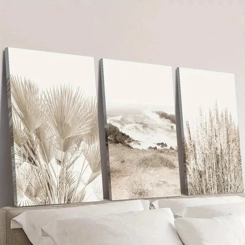 3pcs Beach Coast & Rhododendron Plant Wall Art Set Canvas Framed 40x60cm - High Quality Print 100% Australian Made Wall Canvas Ready to Hang