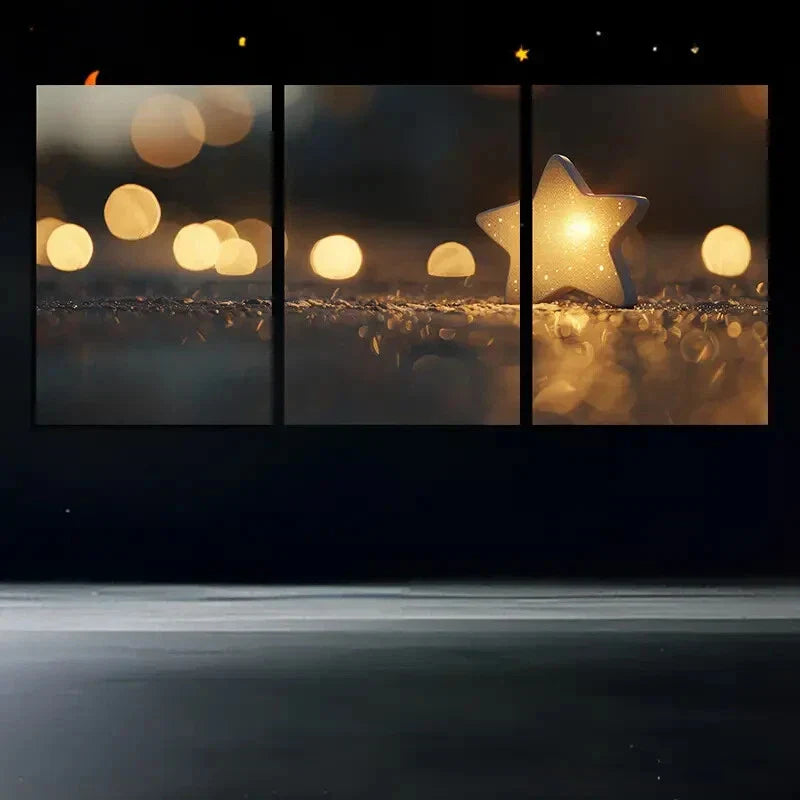 3pcs Beach Golden Stars Bubbles Metal Print Ready to Hang Art