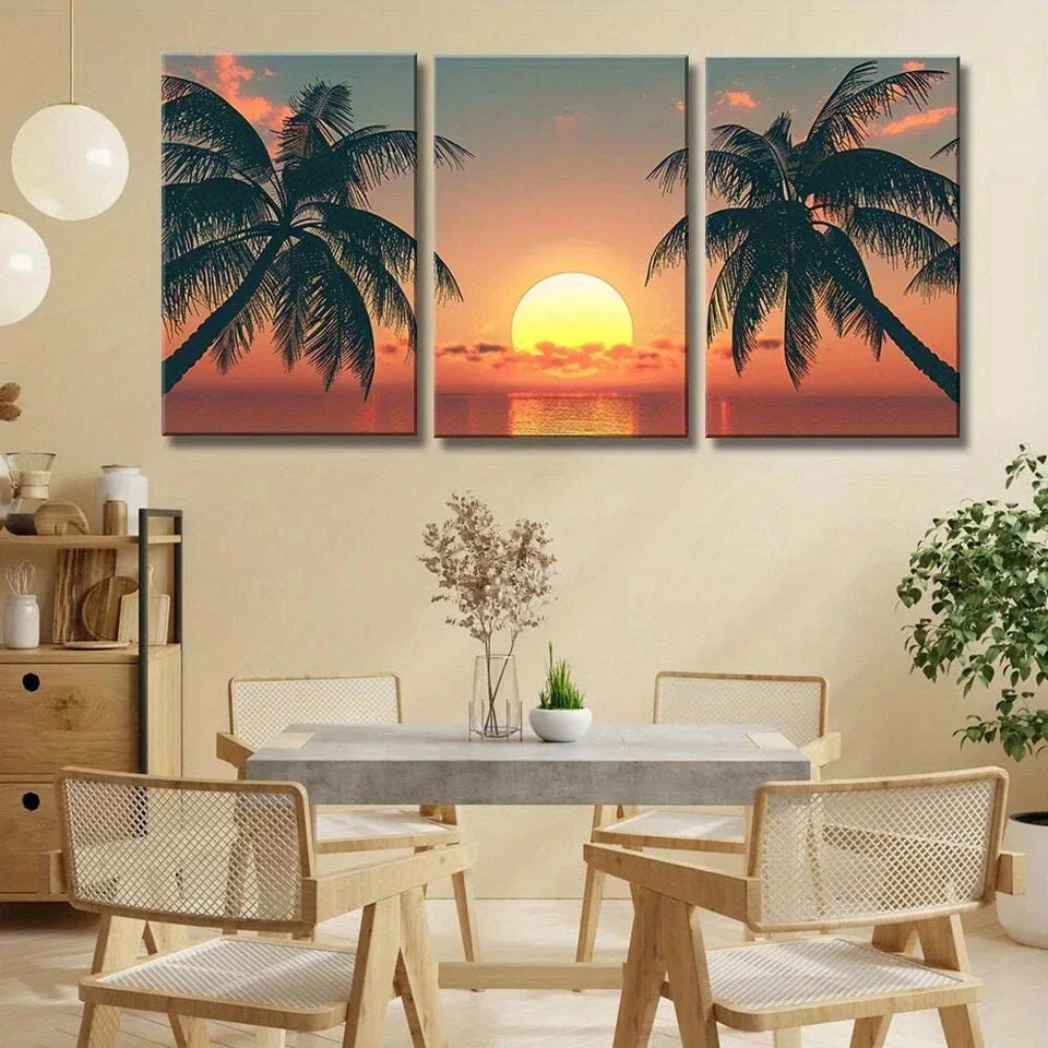 3pcs Beach Palm Tree Ocean Sunset Coastal Metal Print Ready to Hang Art