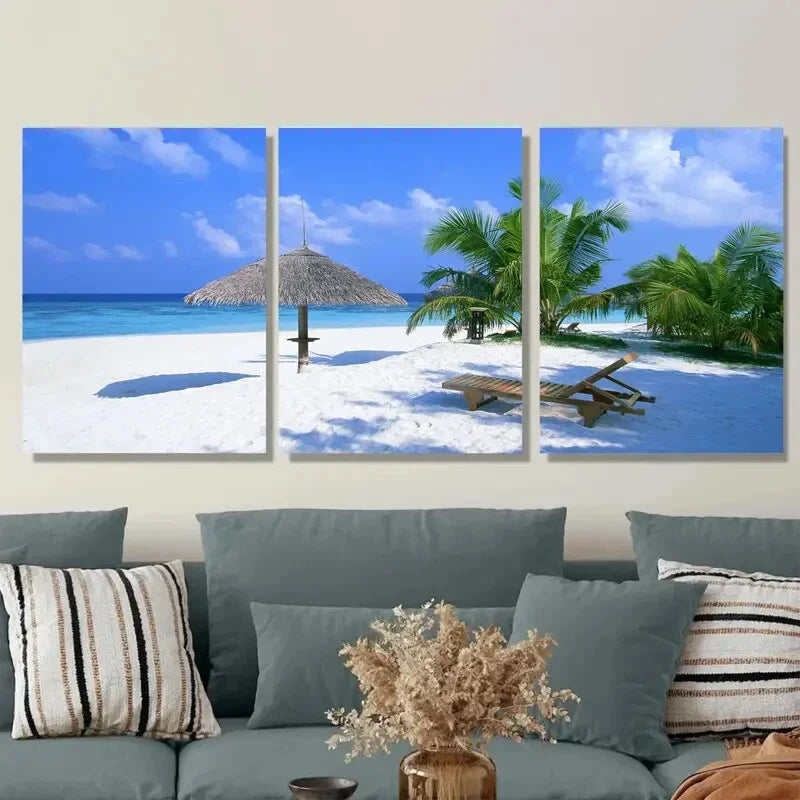 3pcs Beach Paradise Triptych Palm Trees & Sun Metal Print Ready to Hang Art