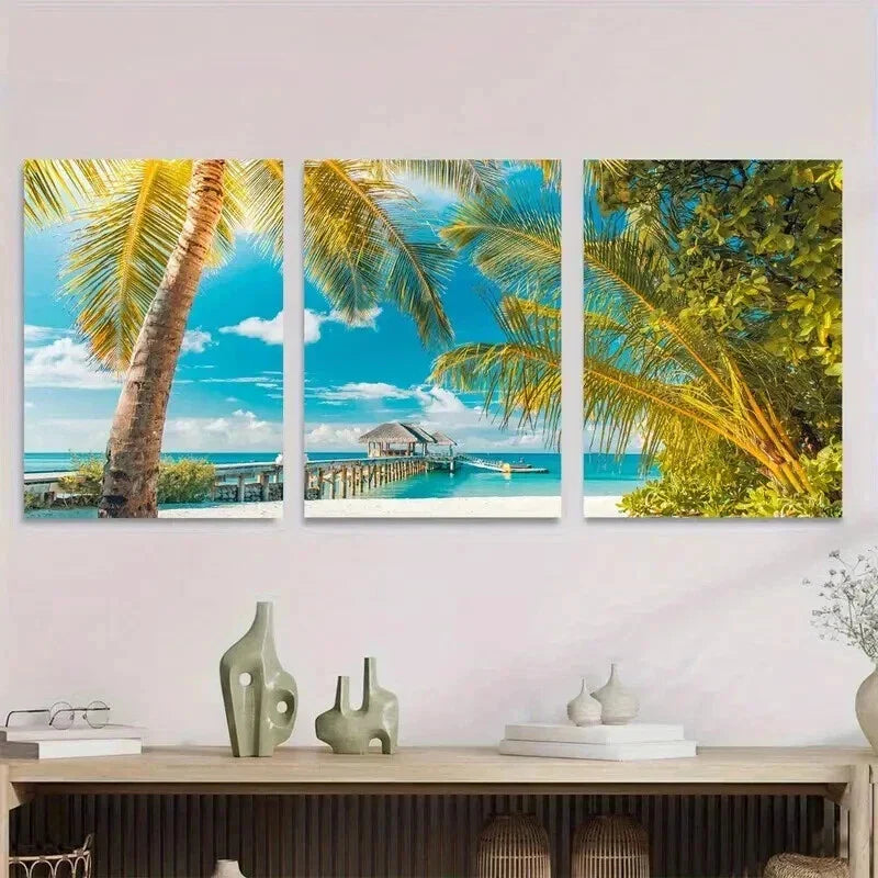 3pcs Beach Paradise Triptych Tropical Ocean Wall Art Set Canvas Framed 40x60cm - High Quality Print 100% Australian Made Wall Canvas Ready to Hang