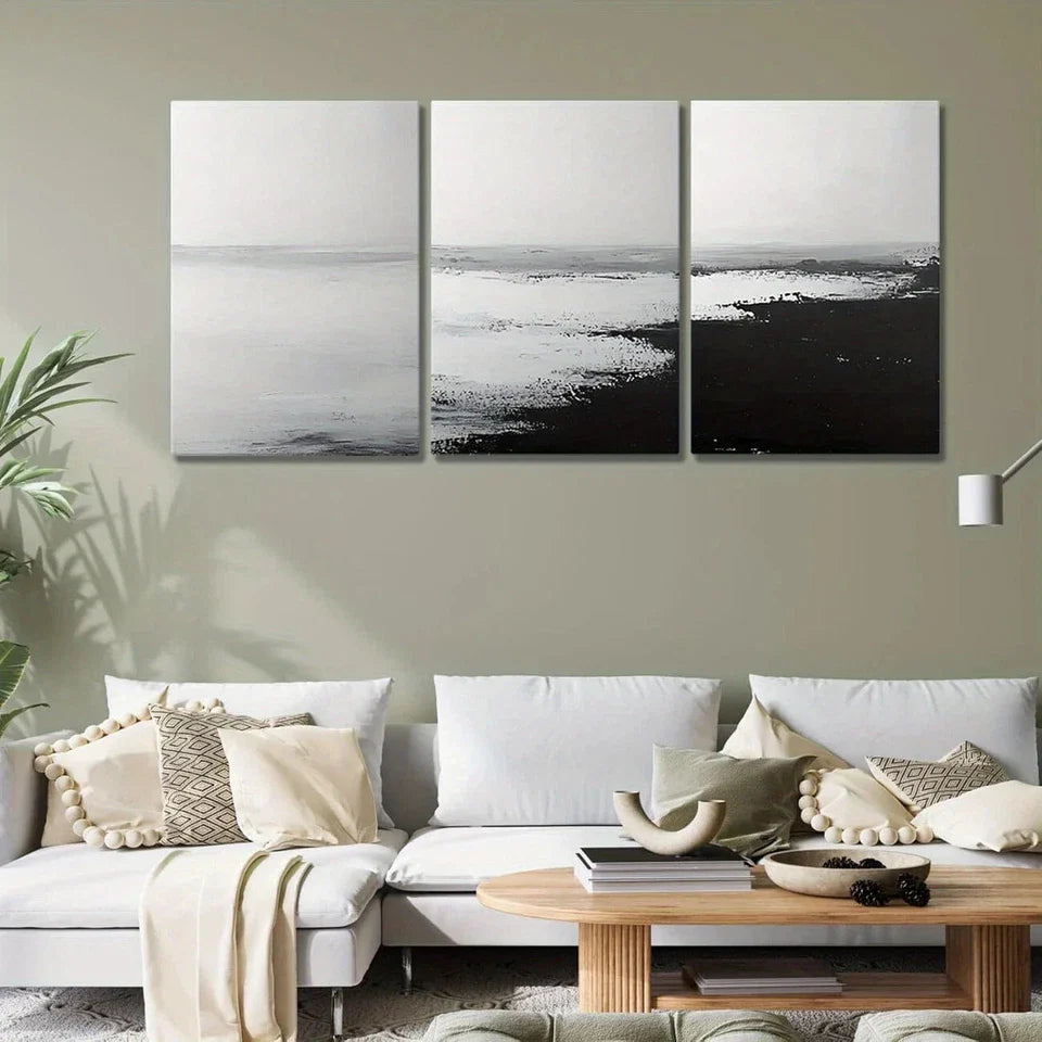 3pcs Beach Scene Black and White Metal Print Ready to Hang Art