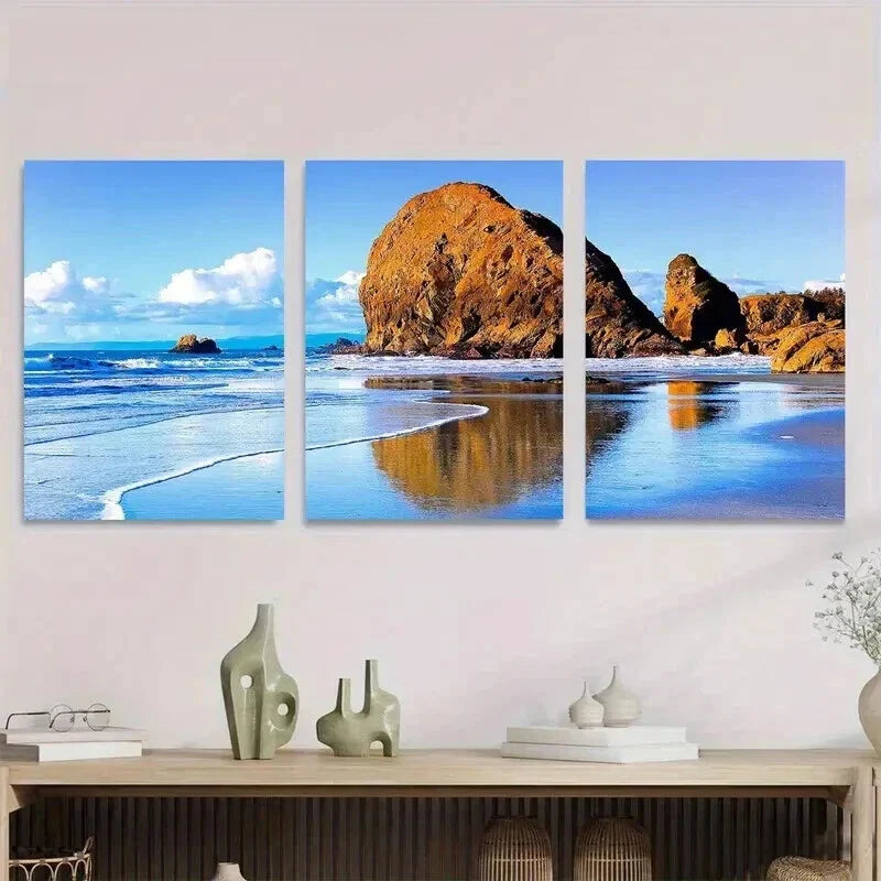 3pcs Beach Scene horeline, Sandy Shore Coastal Wall Art Set Canvas Framed 40x60cm - High Quality Print 100% Australian Made Wall Canvas Ready to Hang