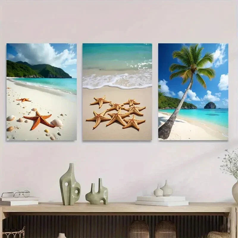 3pcs Beach Scene Paradise With Starfish Trees Wall Art Set Canvas Framed 40x60cm - High Quality Print 100% Australian Made Wall Canvas Ready to Hang