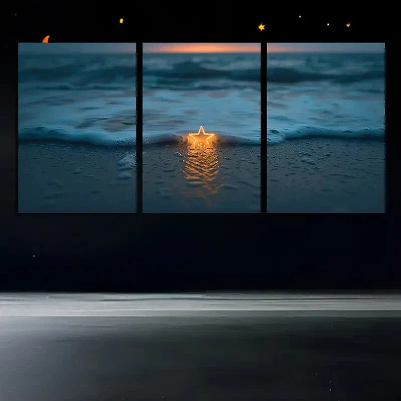 3pcs Beach Stars White Waves Sunset Metal Print Ready to Hang Art