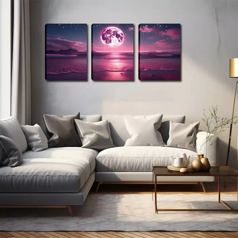3pcs Beautiful Art, Fuchsia Moon Wall Art Set Canvas Framed 40x60cm - High Quality Print 100% Australian Made Wall Canvas Ready to Hang