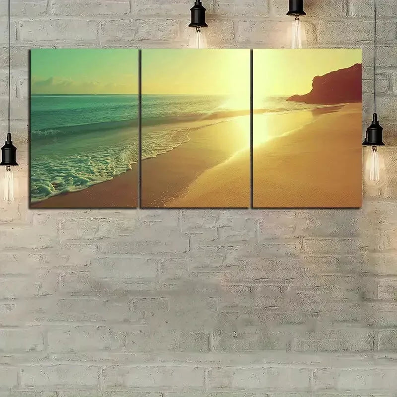 3pcs Beautiful Beach Sunset in Spain Canvas Framed 40x60cm - High Quality Print 100% Australian Made Wall Canvas Ready to Hang
