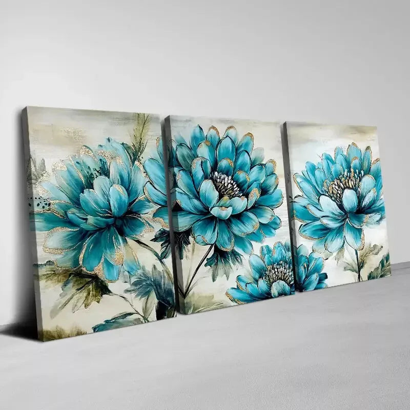 3pcs Beautiful Blue Flowers with Greenery Wall Art Set Canvas Framed 40x60cm - High Quality Print 100% Australian Made Wall Canvas Ready to Hang