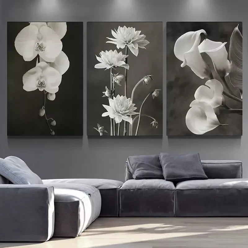 3pcs Beautiful Flower Painting Black And White Canvas Framed 40x60cm - High Quality Print 100% Australian Made Wall Canvas Ready to Hang