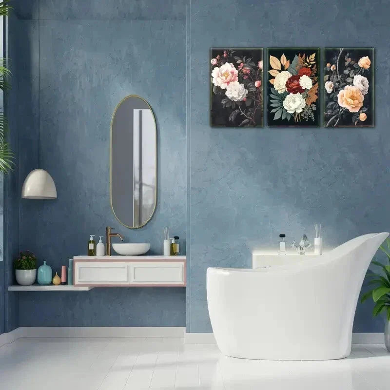 3pcs Beautiful Flowers on Black Background Floral Metal Print Ready to Hang Art