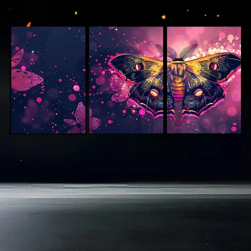 3pcs Beautiful Fluffy Moth Colourful Metal Print Ready to Hang Art