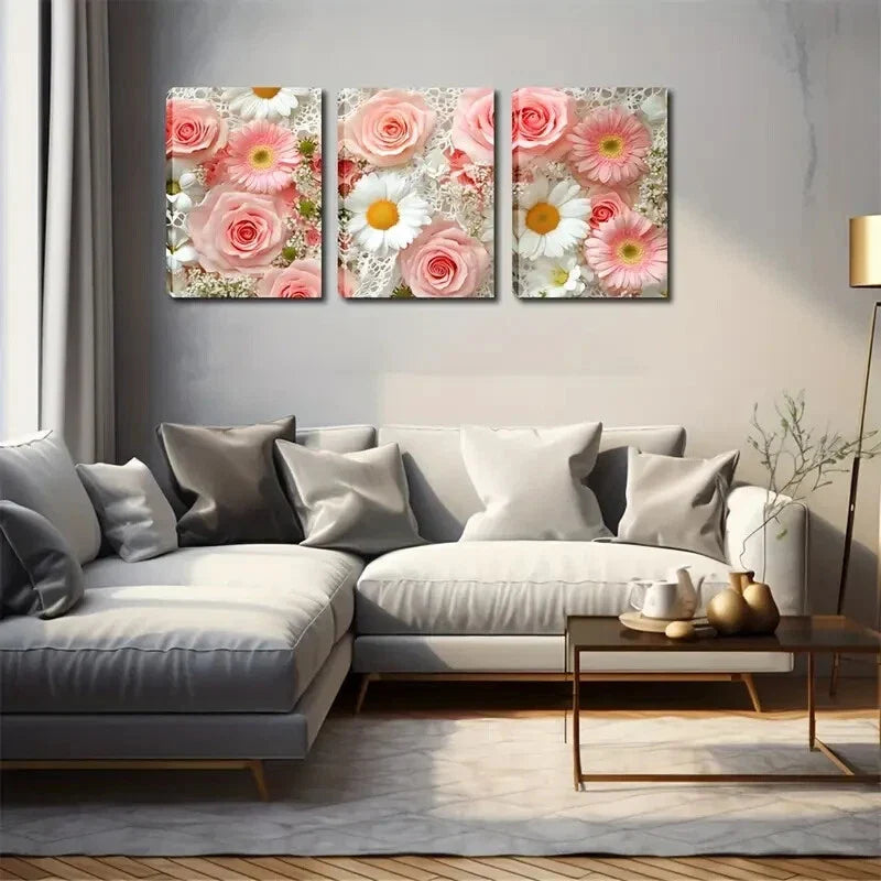 3pcs Beautiful Pink And White Flowers Fresh Wall Art Set Canvas Framed 40x60cm - High Quality Print 100% Australian Made Wall Canvas Ready to Hang