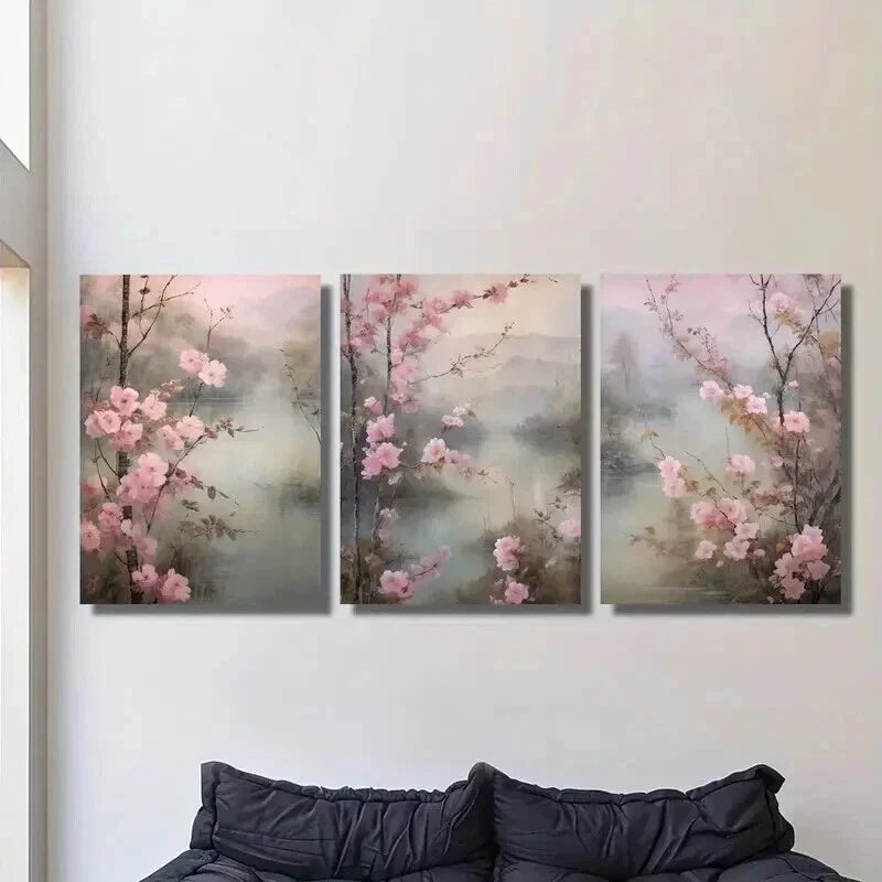 3pcs Beautiful Pink Peach Blossoms in Spring Wall Art Set Canvas Framed 40x60cm - High Quality Print 100% Australian Made Wall Canvas Ready to Hang