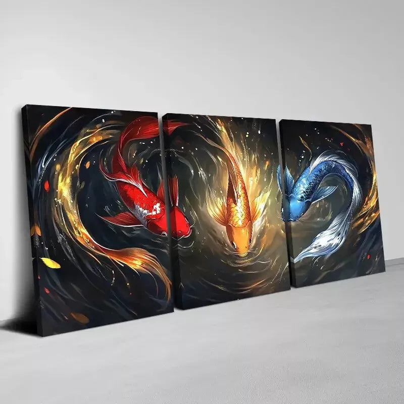 3pcs Beautiful Red Golden Blue Koi Swimming Wall Art Set Canvas Framed 40x60cm - High Quality Print 100% Australian Made Wall Canvas Ready to Hang