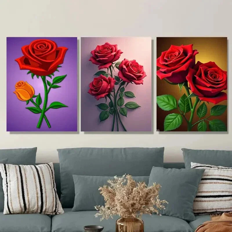 3pcs Beautiful Red Rose Orange Metal Print Ready to Hang Art