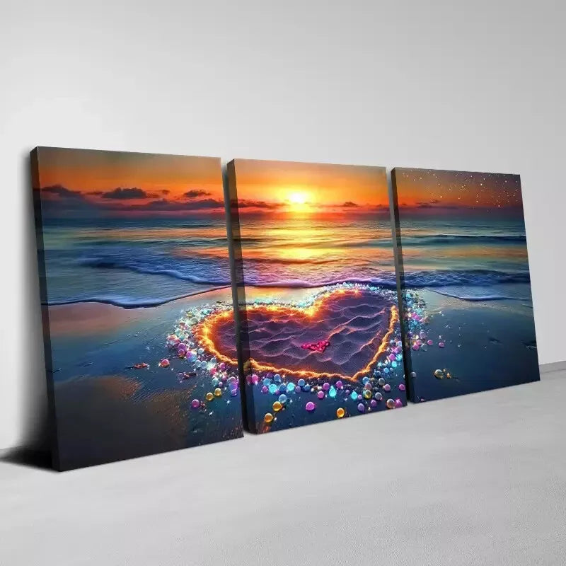3pcs Beautiful Seaside View Love Stone Wall Art Set Canvas Framed 40x60cm - High Quality Print 100% Australian Made Wall Canvas Ready to Hang