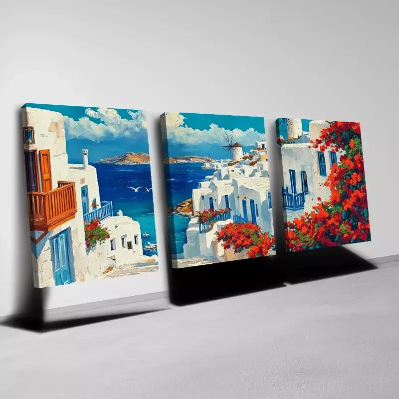 3pcs Beautiful Seaside with Flowers and Seagulls Wall Art Set Canvas Framed 40x60cm - High Quality Print 100% Australian Made Wall Canvas Ready to Hang