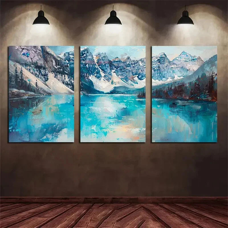3pcs Beautiful Turquoise Lake Surrounded Green Metal Print Ready to Hang Art
