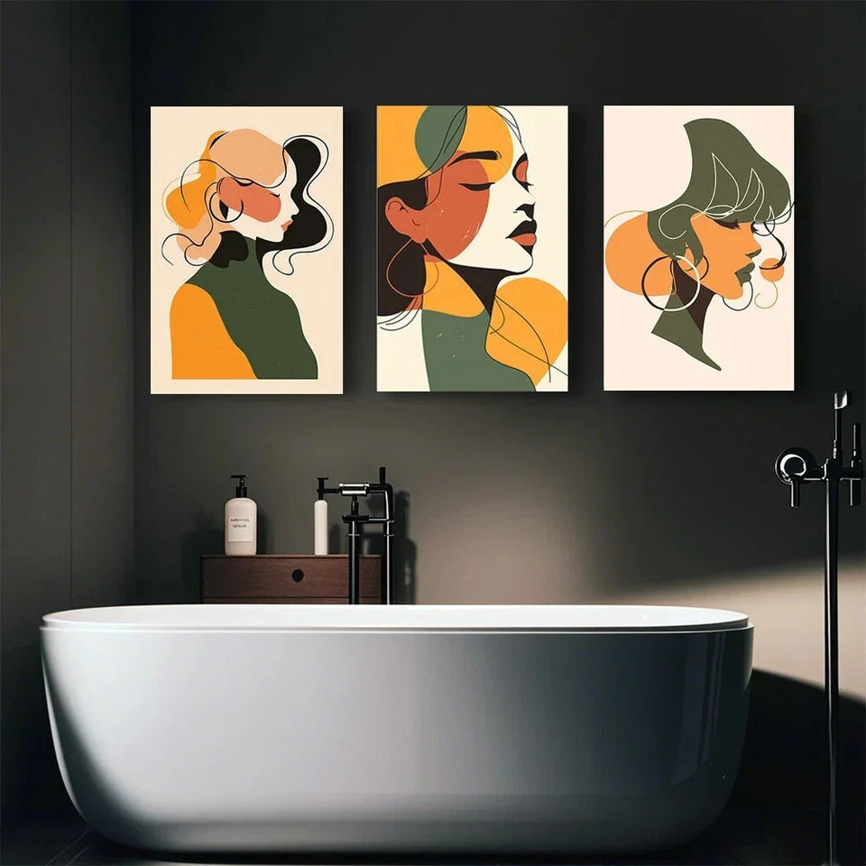 3pcs Beautiful Women Simple Line Style Metal Print Ready to Hang Art