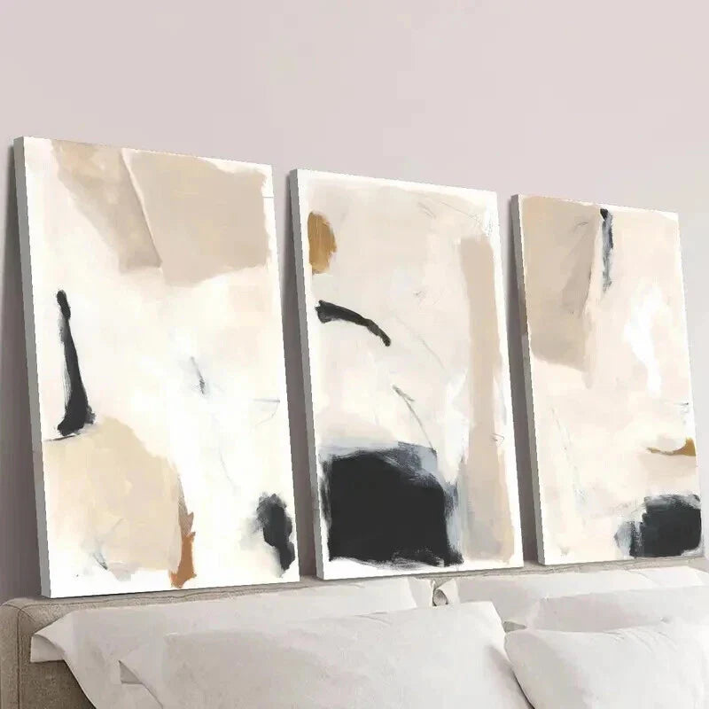 3pcs Beige Abstract Nordic Style Textured Wall Art Set Canvas Framed 40x60cm - High Quality Print 100% Australian Made Wall Canvas Ready to Hang