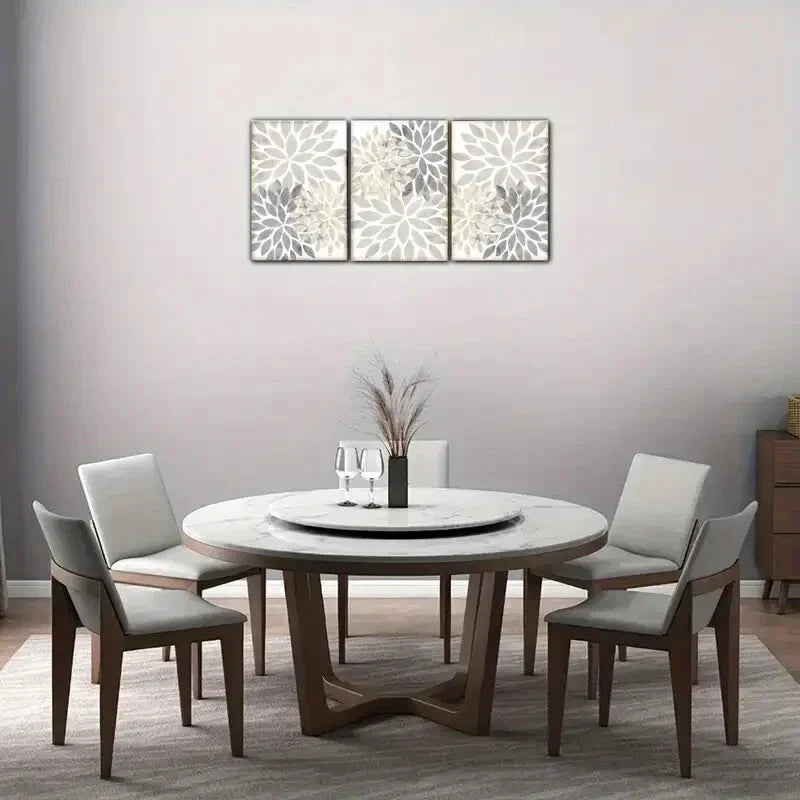 3pcs Beige Grey Tan Floral Art Decorative Metal Print Ready to Hang Art