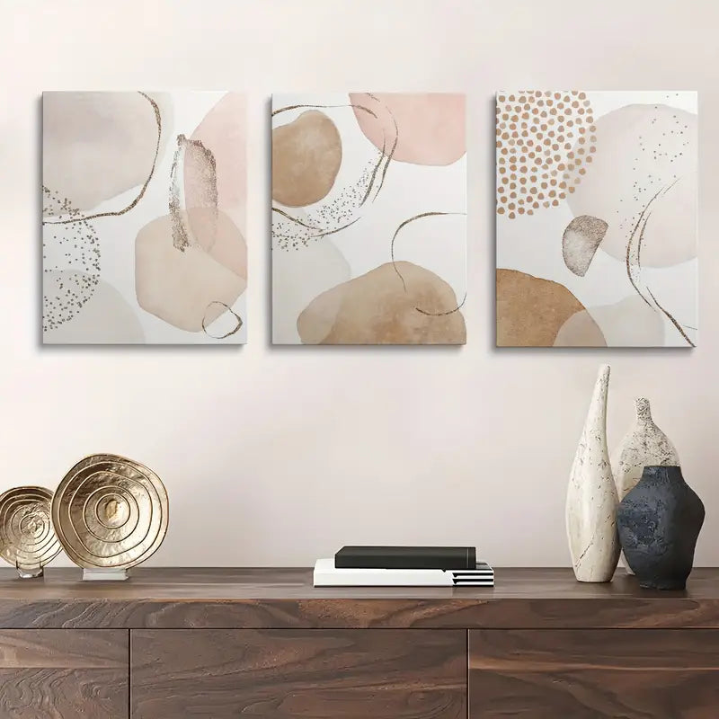 3pcs Beige & Pink Geometric Leaf Patterns, Minimalist Metal Print Ready to Hang Art