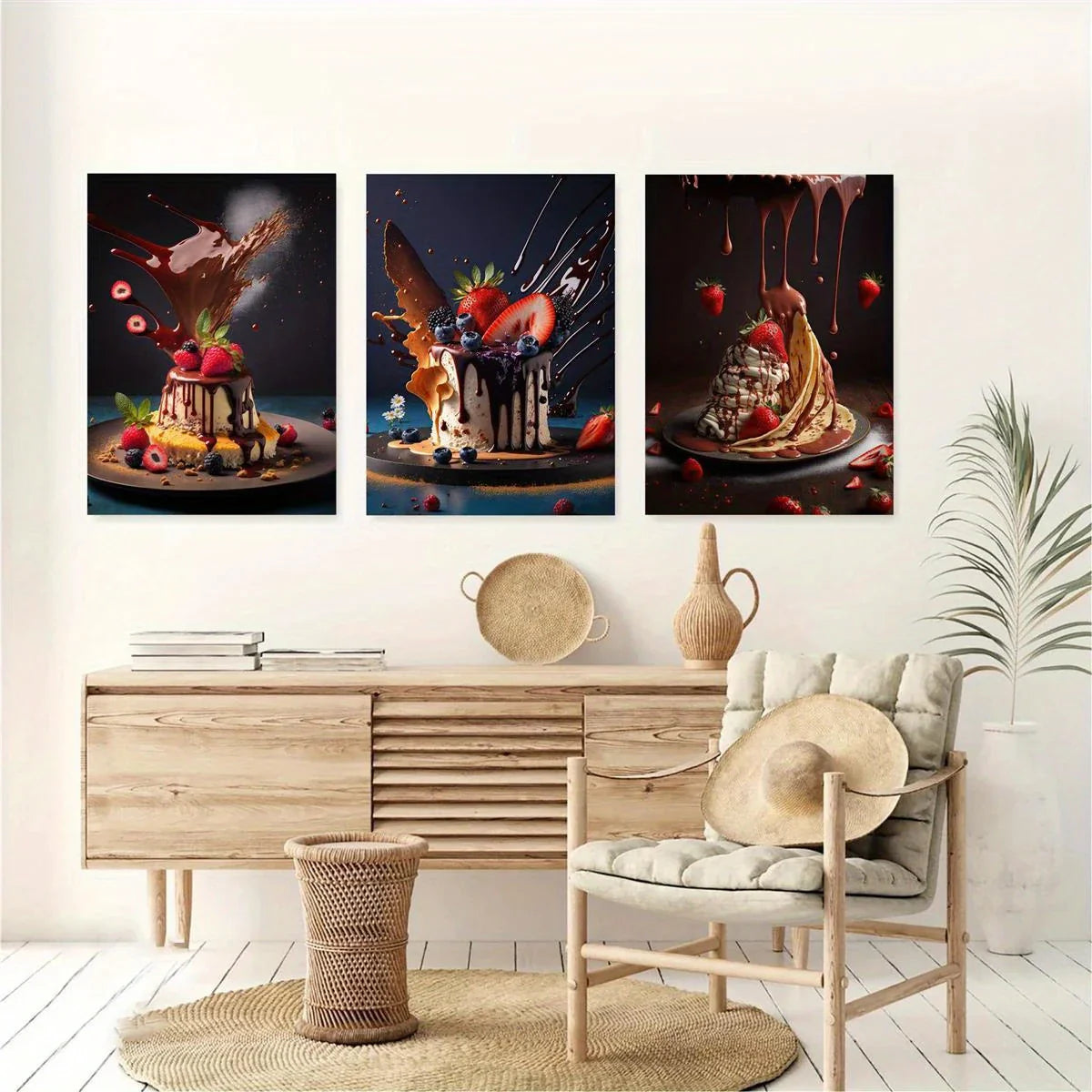 3pcs Berries, Chocolate, Berry, Food, Sweet, Tasty, Dessert Metal Print Ready to Hang Art
