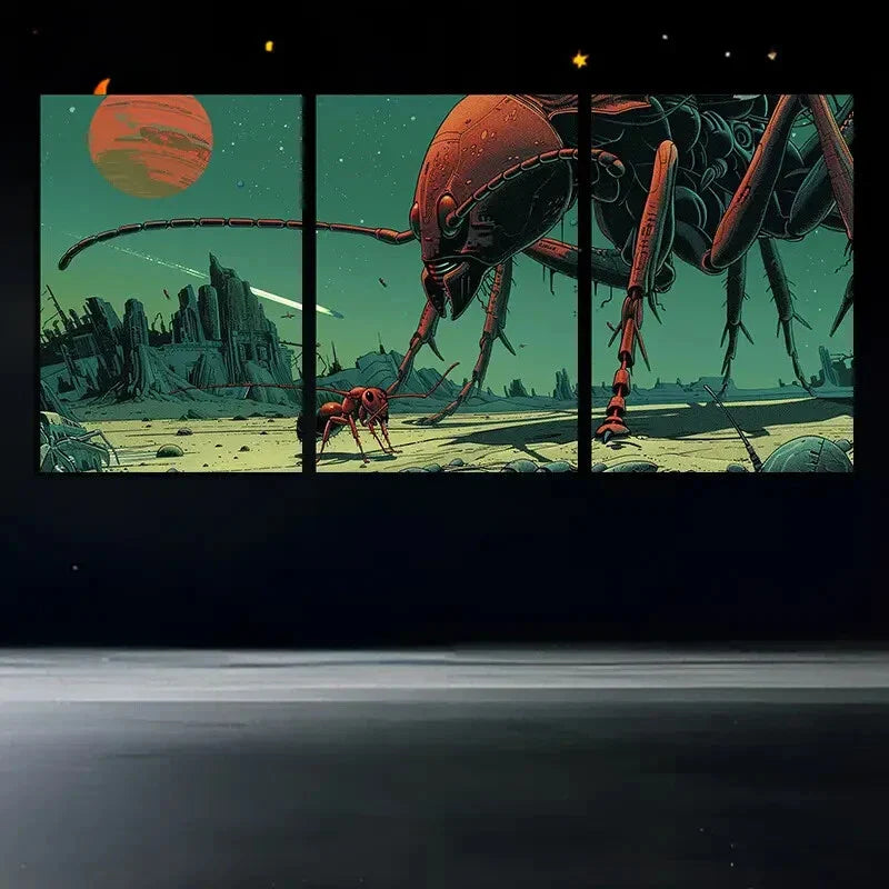 3pcs Big Alien Ants Space Moon Rocket Metal Print Ready to Hang Art