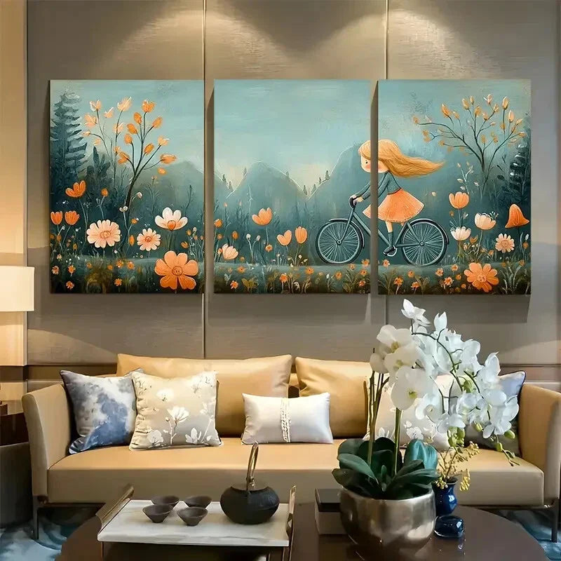 3pcs Biking Girl Nature Inspired Design Metal Print Ready to Hang Art