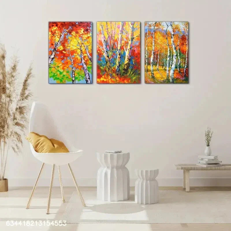 3pcs Birch Forest Decorative Poster Landscape Metal Print Ready to Hang Art