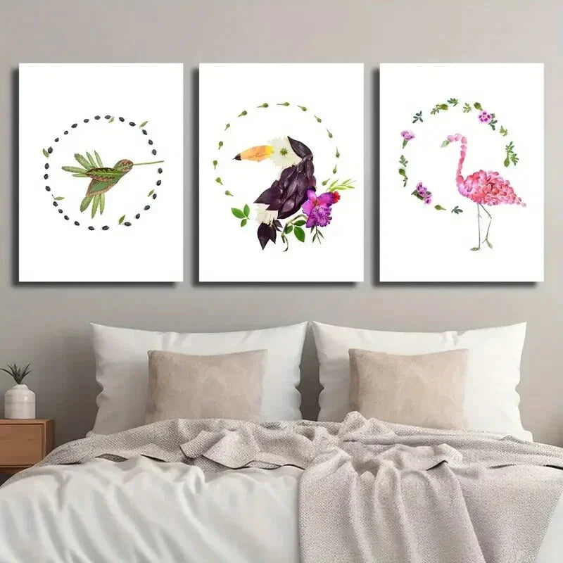 3pcs Bird Murals Flowers Tropical Hummingbird Metal Print Ready to Hang Art
