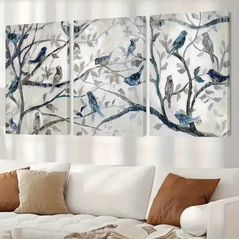 3pcs Birds & Branches Triptych Wall Art Set Canvas Framed 40x60cm - High Quality Print 100% Australian Made Wall Canvas Ready to Hang