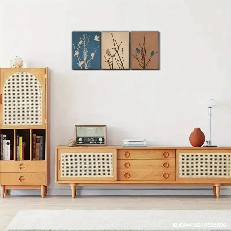 3pcs Birds on a Branch Art Mocha Birds Print Metal Print Ready to Hang Art