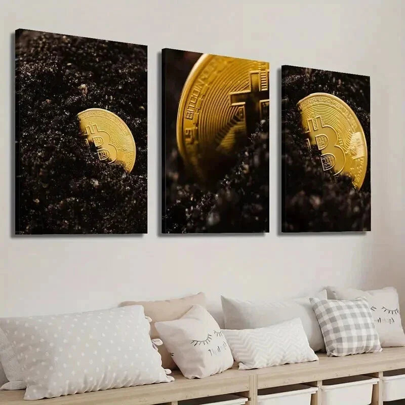 3pcs Bitcoin Photography Cryptocurrency Wall Art Set Canvas Framed 40x60cm - High Quality Print 100% Australian Made Wall Canvas Ready to Hang