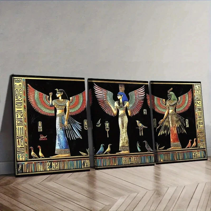 3pcs Black ancient Egyptian frescoes Wall Art Set Canvas Framed 40x60cm - High Quality Print 100% Australian Made Wall Canvas Ready to Hang