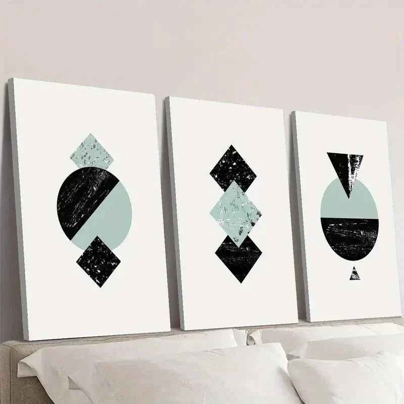 3pcs Black and Blue Nordic Geometric Design Wall Art Set Canvas Framed 40x60cm - High Quality Print 100% Australian Made Wall Canvas Ready to Hang