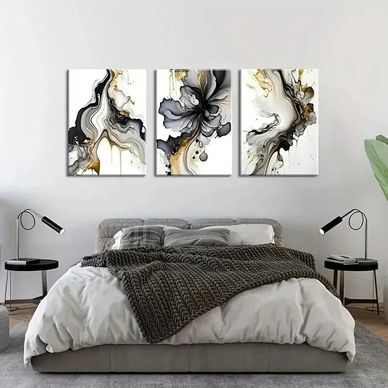 3pcs Black and Gold Abstract Metal Print Ready to Hang Art