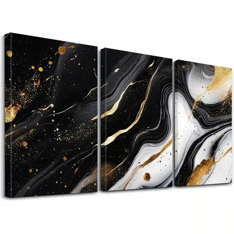 3pcs Black And Gold Aesthetic Veins Marble Wall Art Set Canvas Framed 40x60cm - High Quality Print 100% Australian Made Wall Canvas Ready to Hang