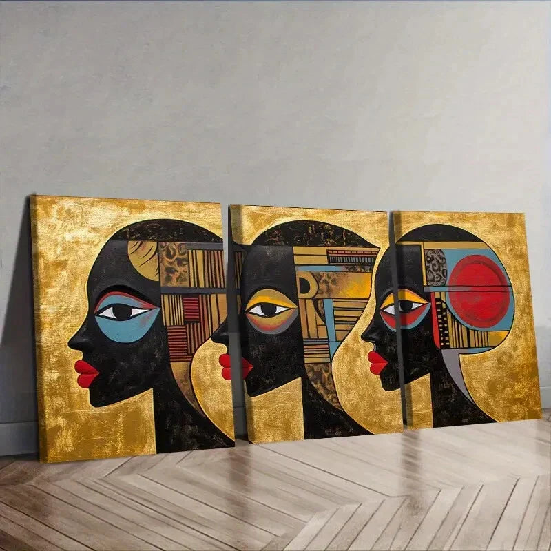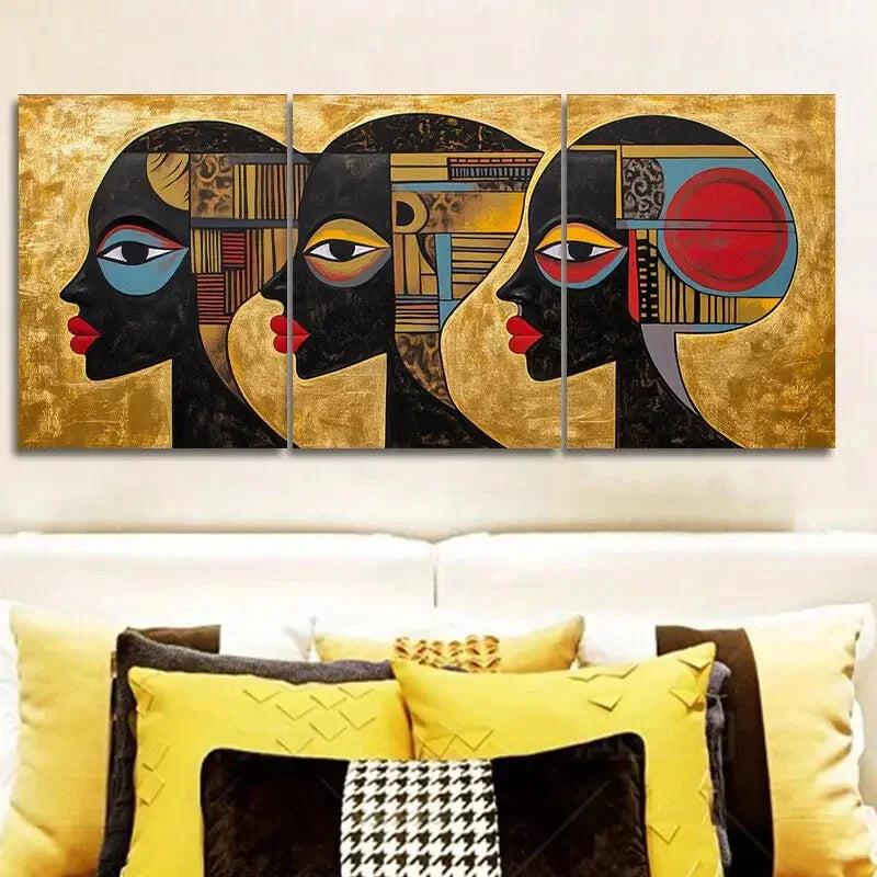 3pcs Black and Golden portrait abstract painting Wall Art Set Canvas Framed 40x60cm - High Quality Print 100% Australian Made Wall Canvas Ready to Hang