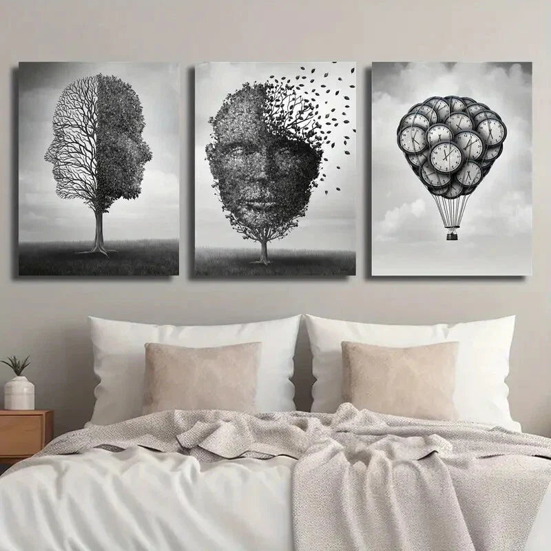 3pcs Black and White Abstract Tree Metal Print Ready to Hang Art