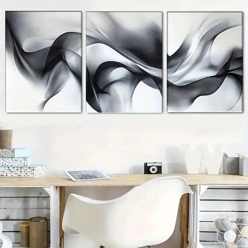 3pcs Black And White Abstract Wave Metal Print Ready to Hang Art