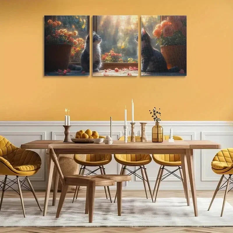 3pcs Black and White Cat Serene Feline Sitting Metal Print Ready to Hang Art