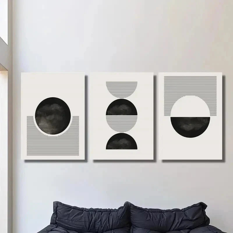 3pcs Black and White Geometric Circle Metal Print Ready to Hang Art