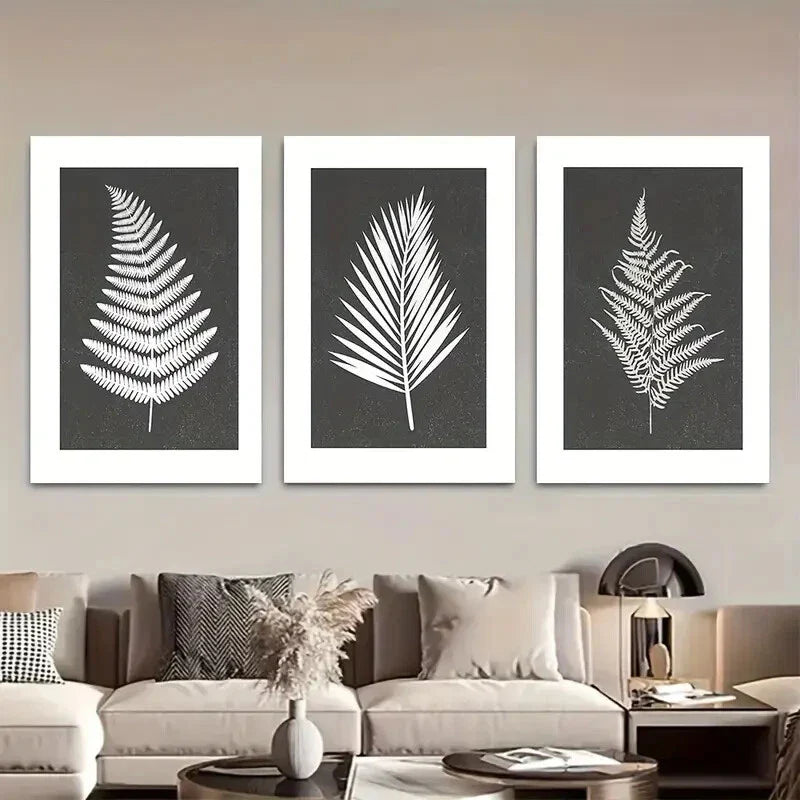 3pcs Black and White Leaves Botanical IllustrationsMetal Print Ready to Hang Art