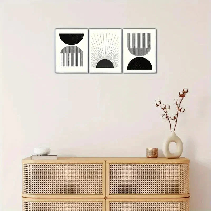 3pcs Black and White Lines Decorative Bauhaus Metal Print Ready to Hang Art
