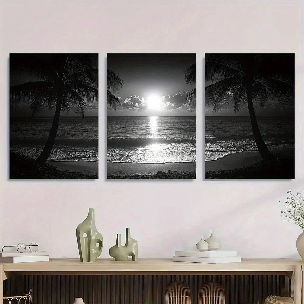 3pcs Black and White Ocean Beach Metal Print Ready to Hang Art