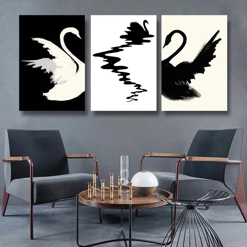 3pcs Black and White Swan Abstract Metal Print Ready to Hang Art